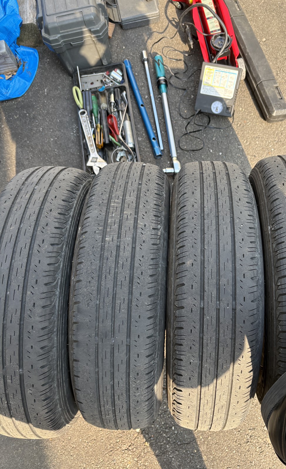 まずは保管してあるタイヤを4本とも物置から出してきて状態を確認します。