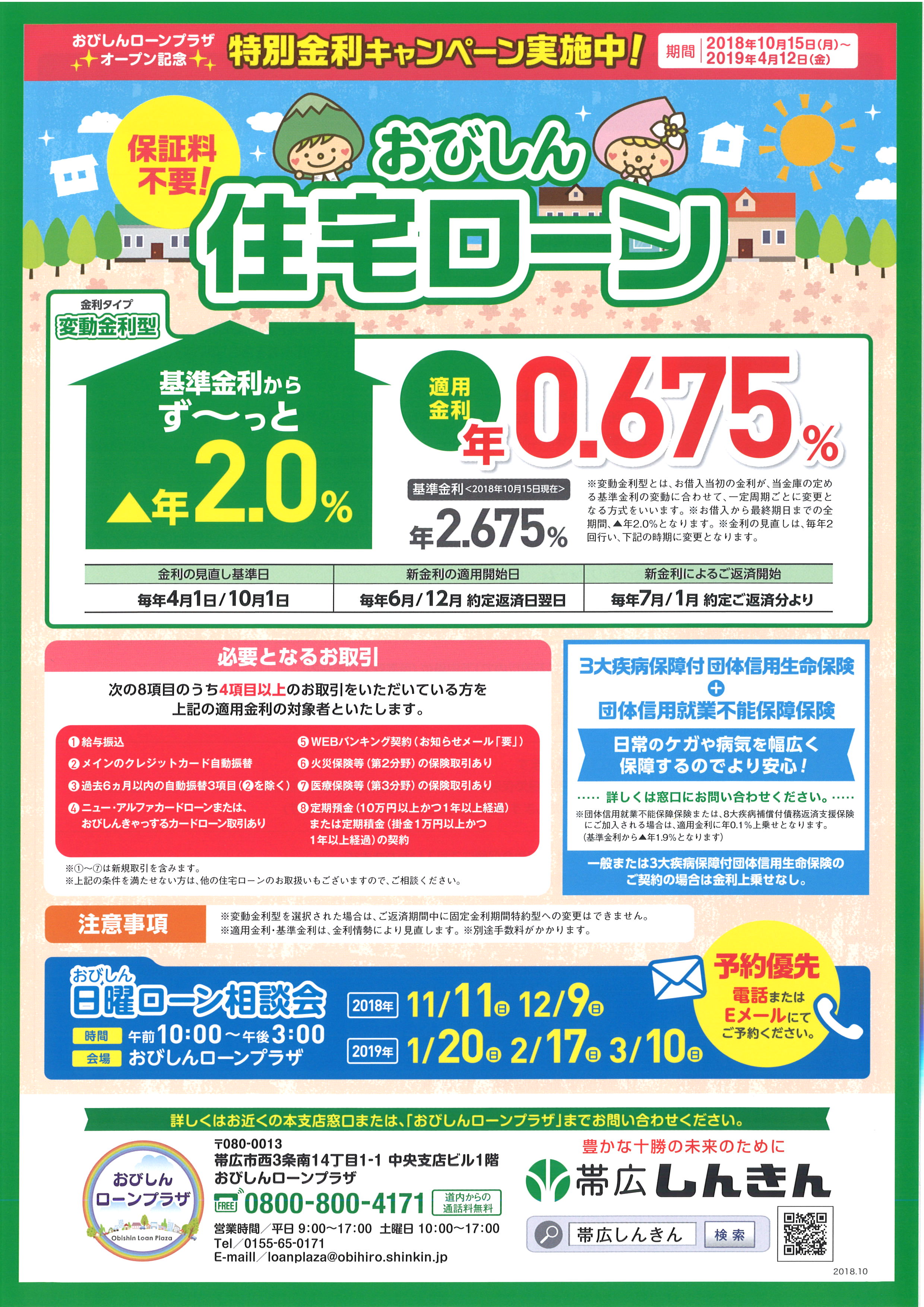 おびしん住宅ローン特別金利キャンペーン実施中のお知らせ↓![]()