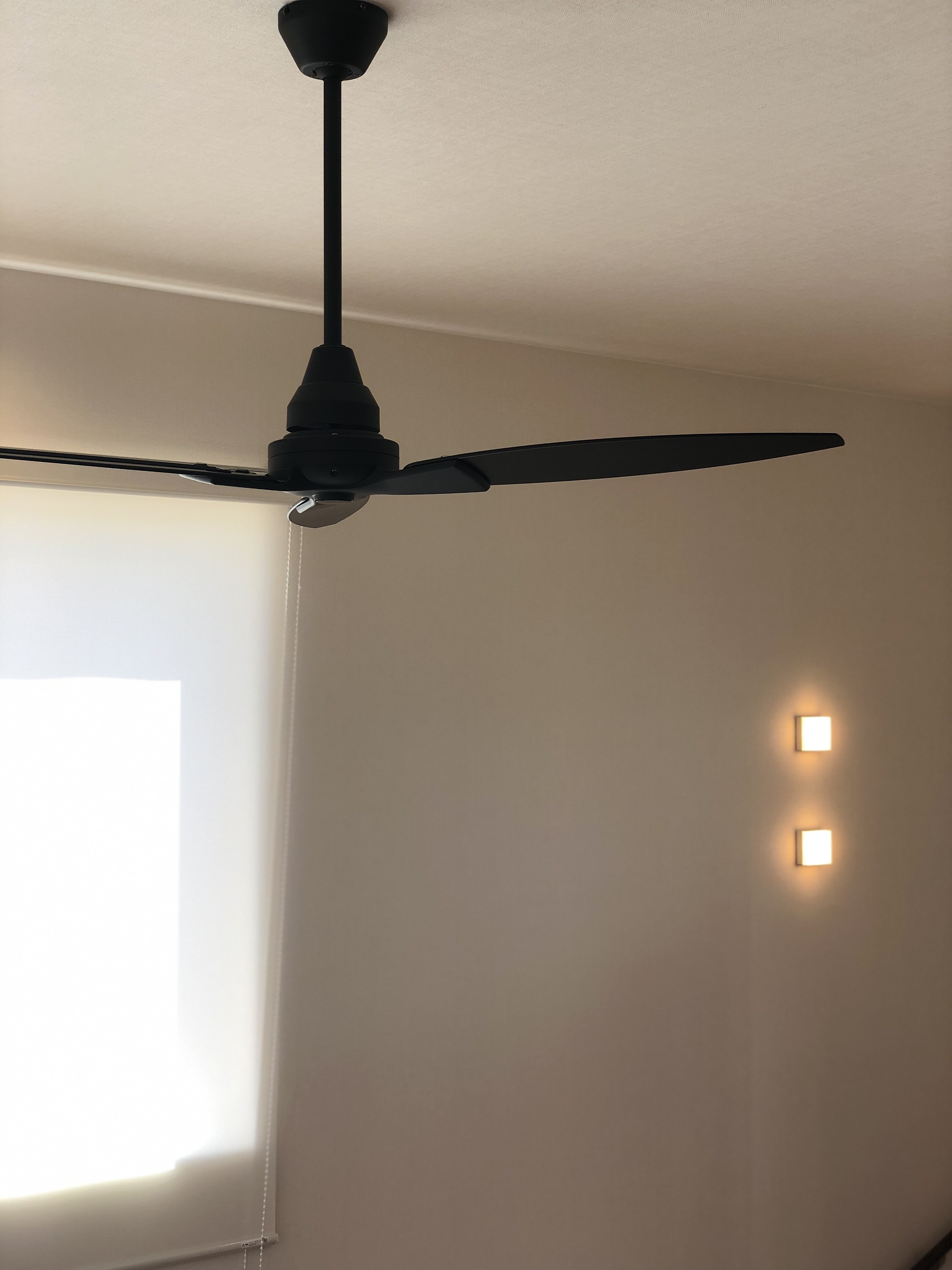オープン階段等に合わせて「ブラックのシーリングファン」にして