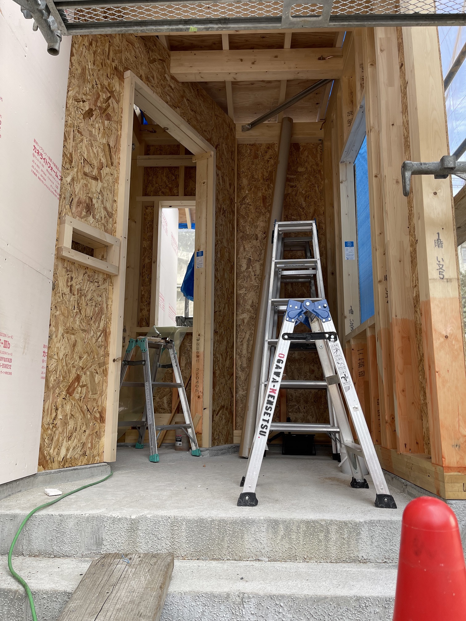 内部はまだ柱、梁が裸でまだまだイメージが沸かないですね。