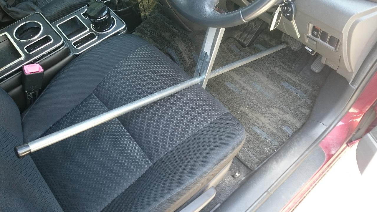 ジャッキアップ後、タイヤが宙に浮いても回転せずにホイールナットを緩めることが出来ます。