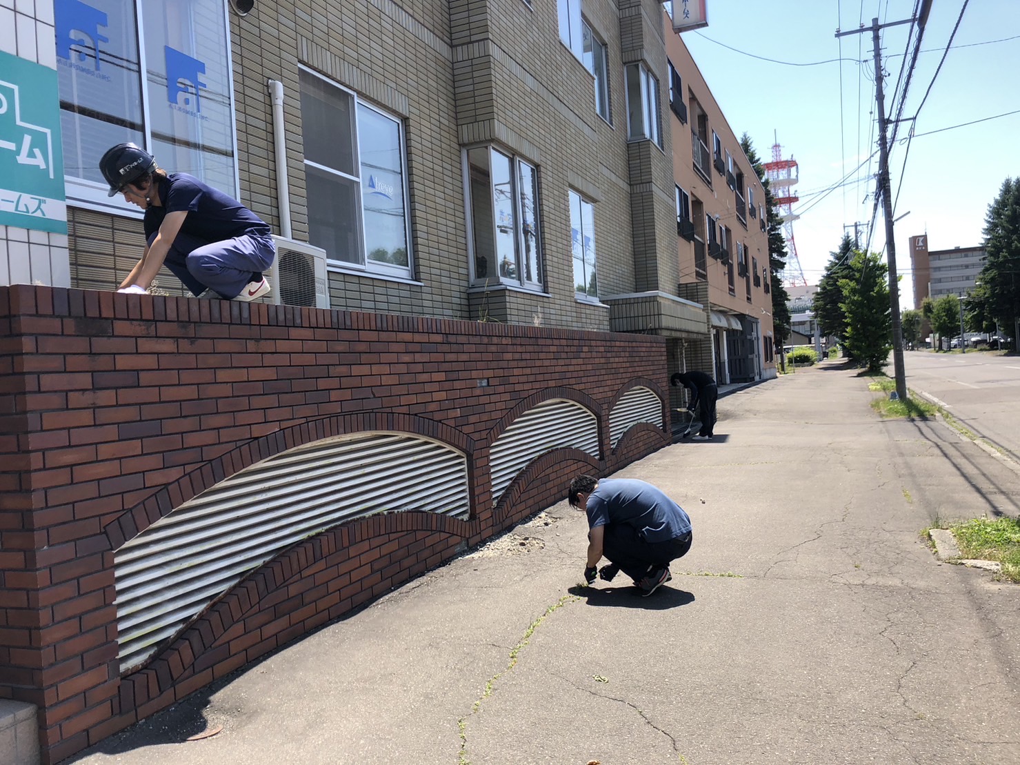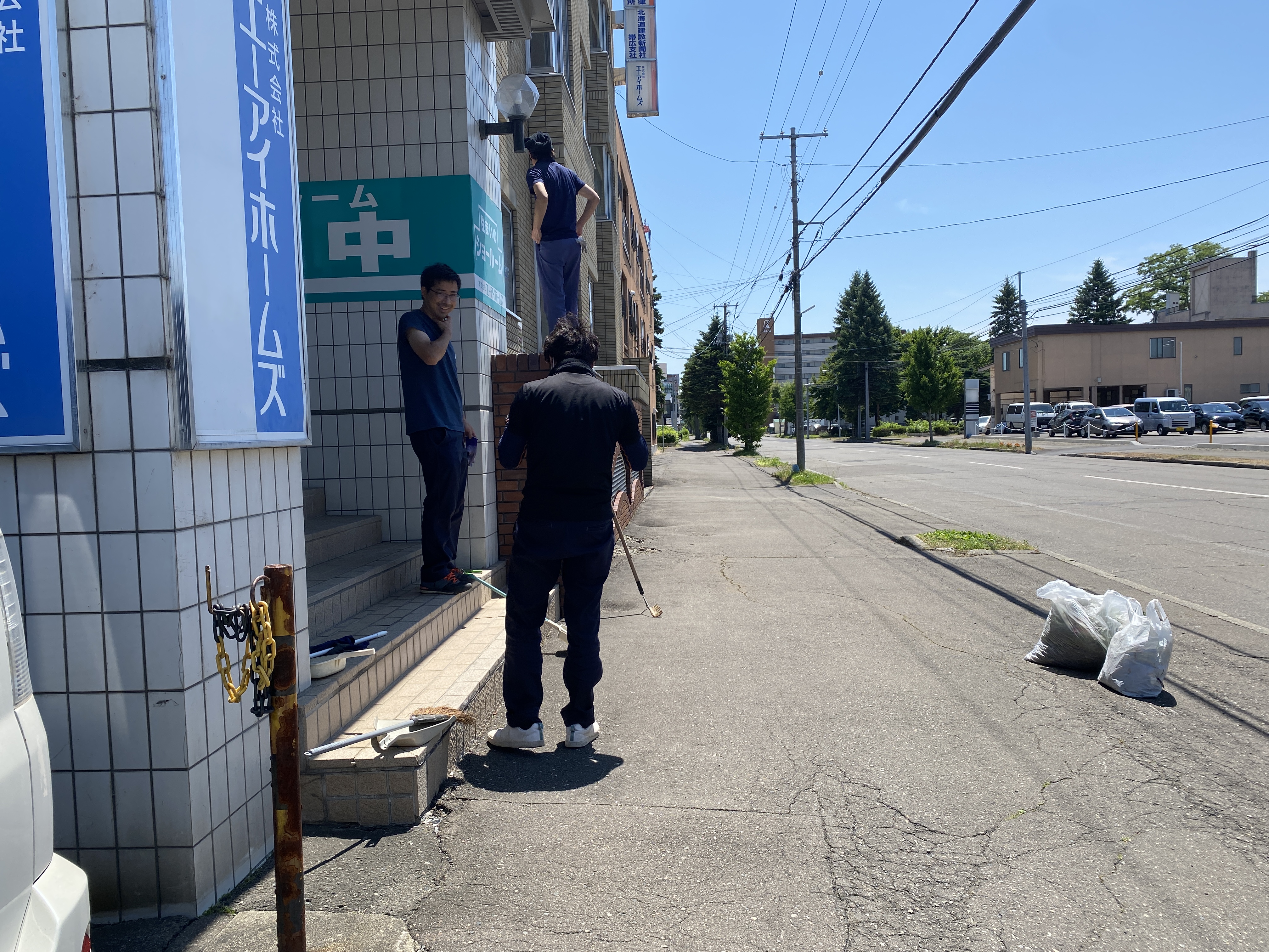 高田課長が一人で頑張った事務所の窓下もきれいになりました。