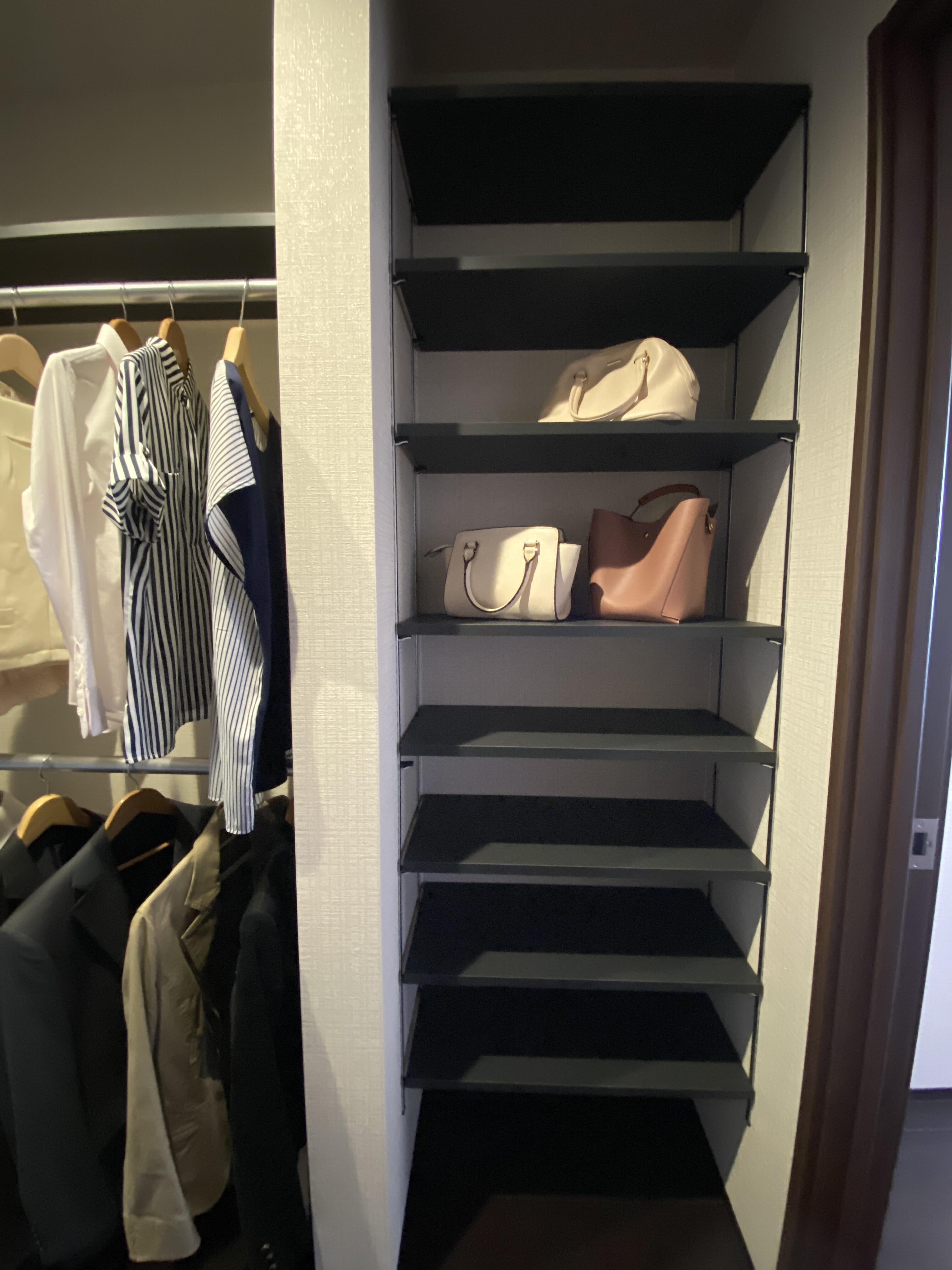 バックや帽子、小物も一つの空間に収納したいですよね。