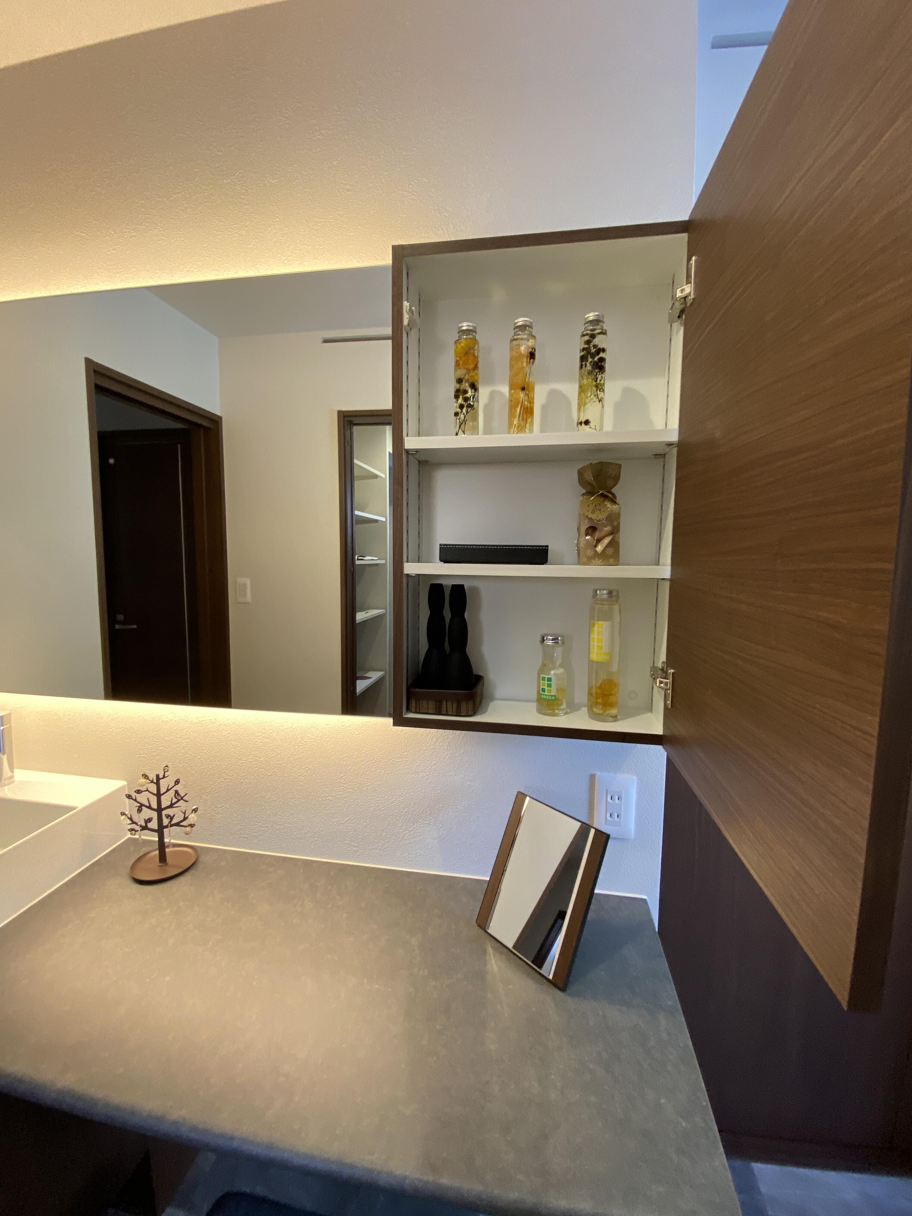 棚といっても洗面ミラーと収納を造作して