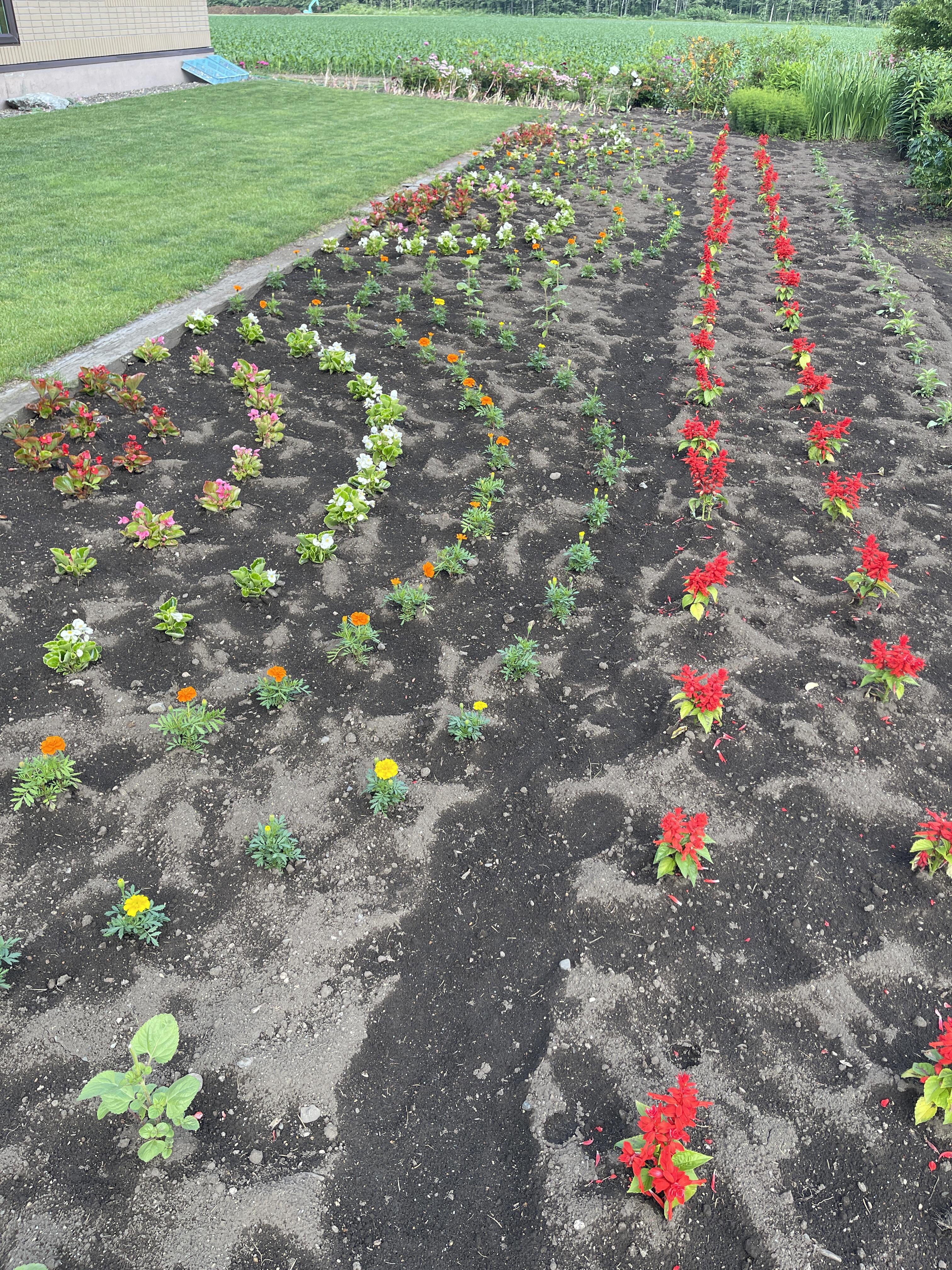 植え方もこだわって大きな分度器の様なもので