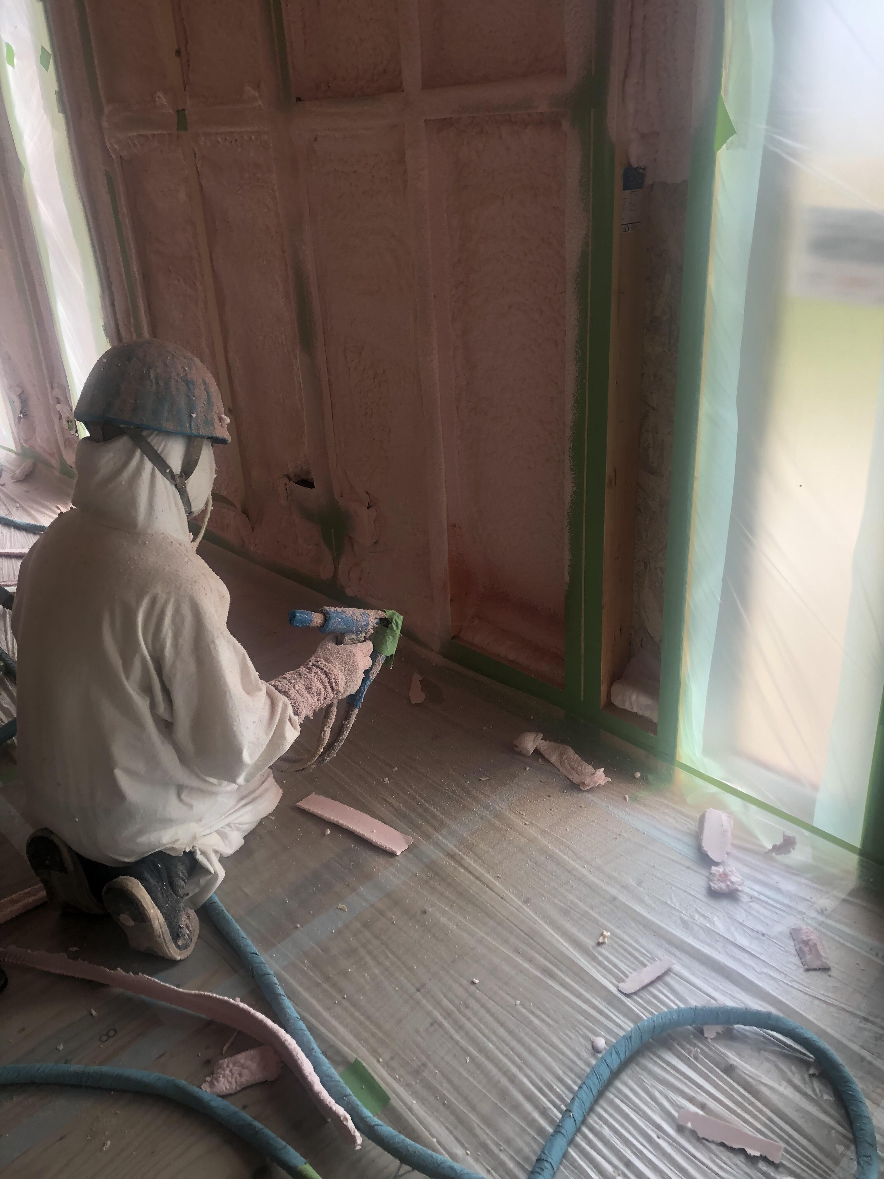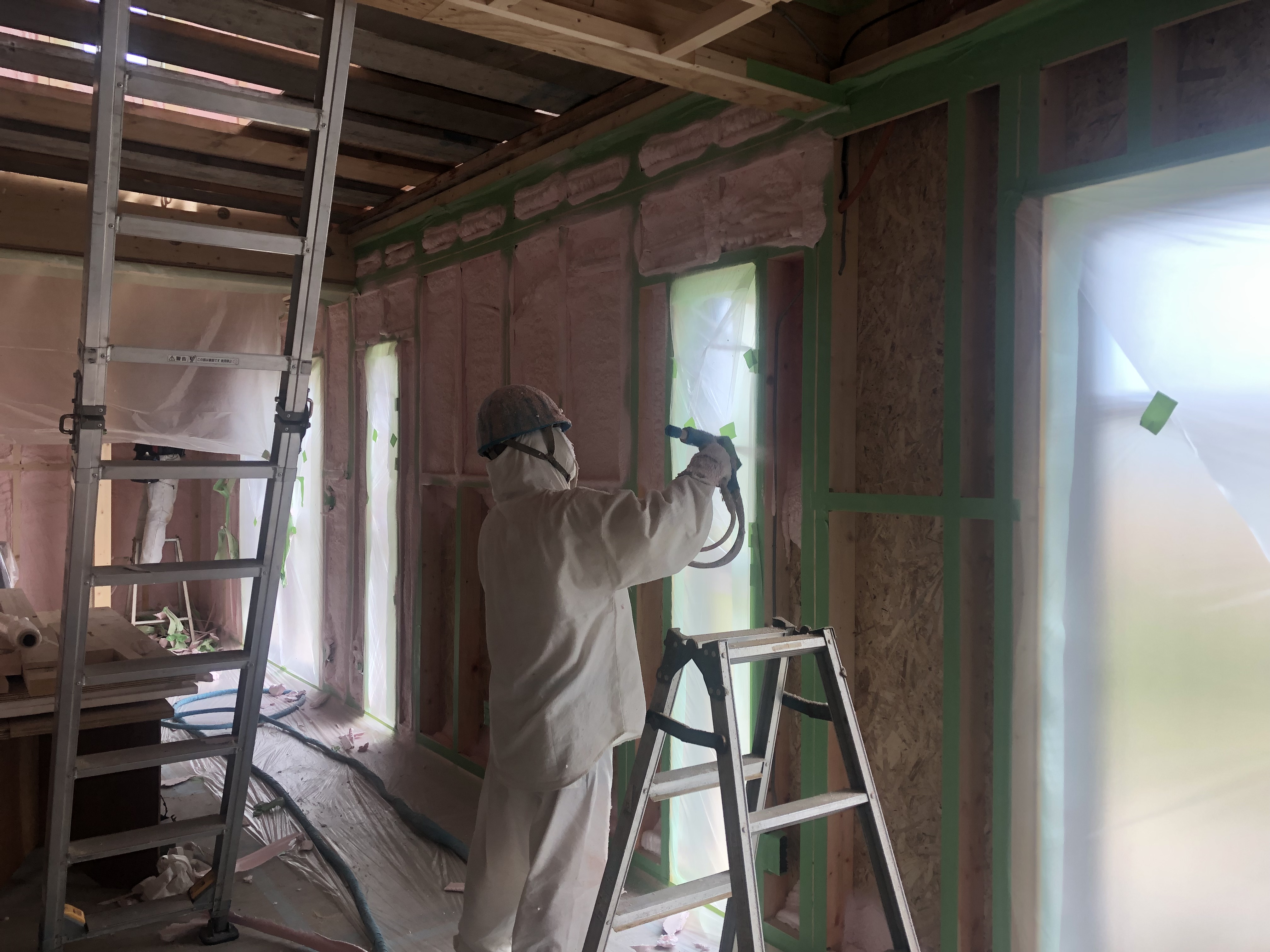 当社ならではの「吹付ウレタン断熱の施工」状況です。