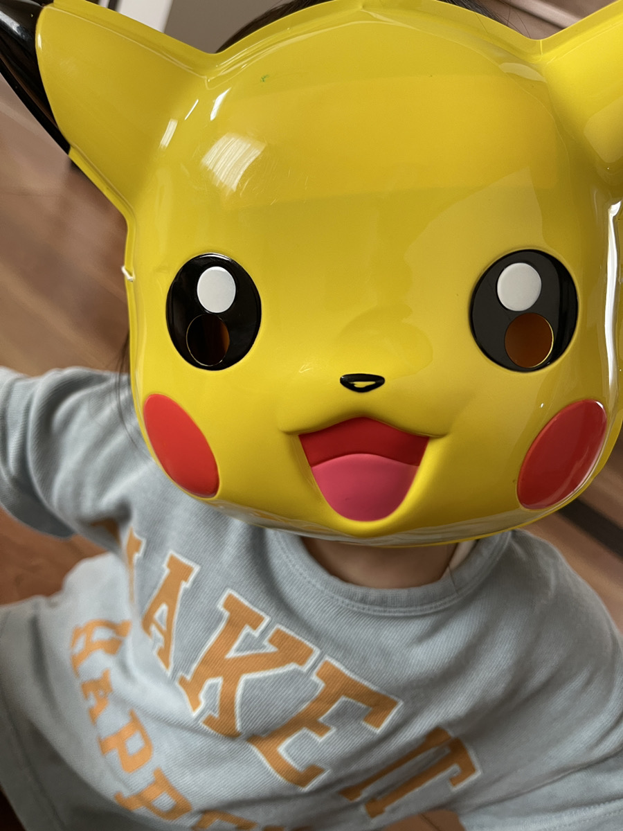 (私がお面を被ると目の位置も合わず、顔もはみ出ます)