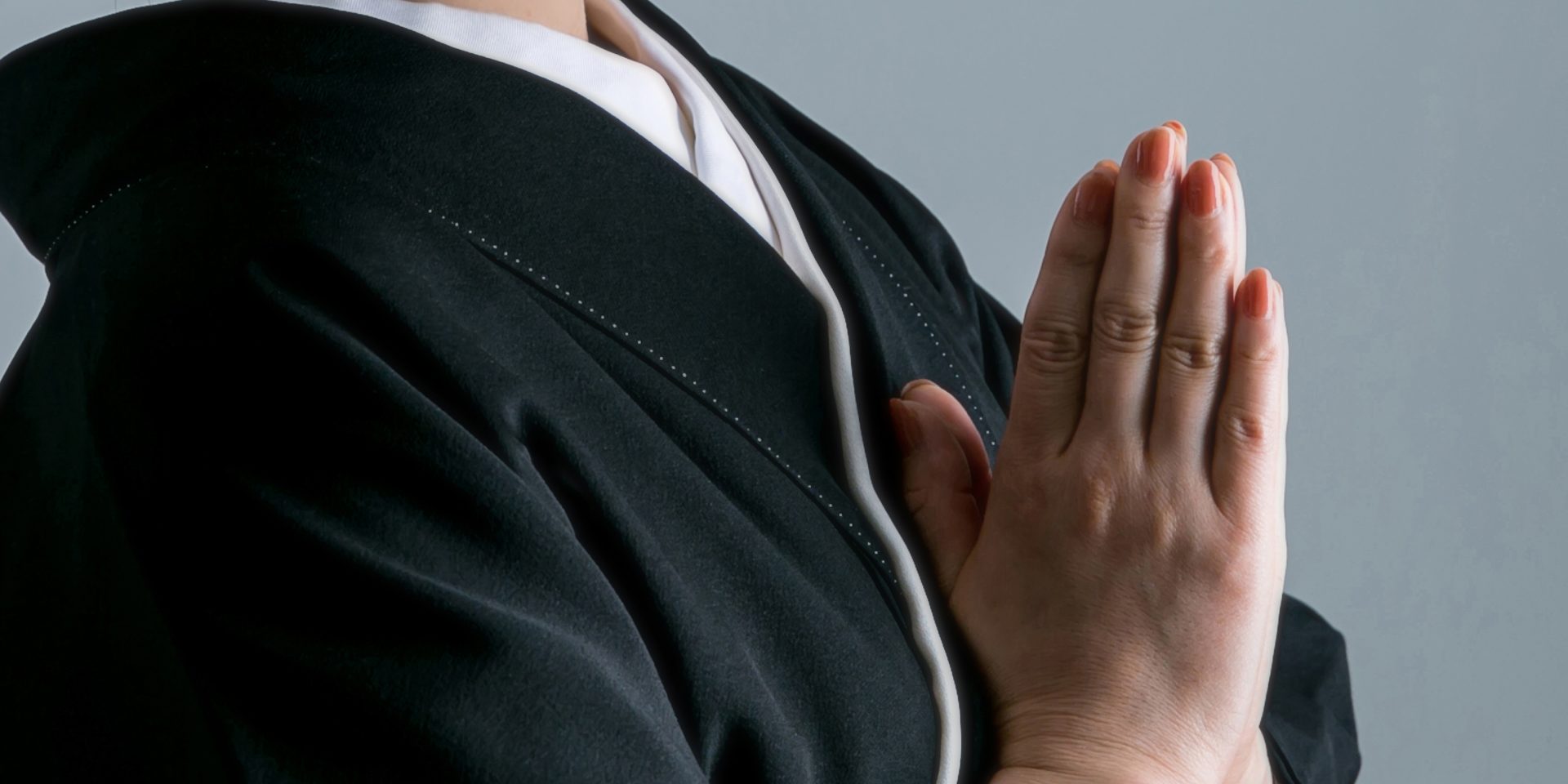 一方、お寺では音を鳴らさずに胸の前で手を合わせます。