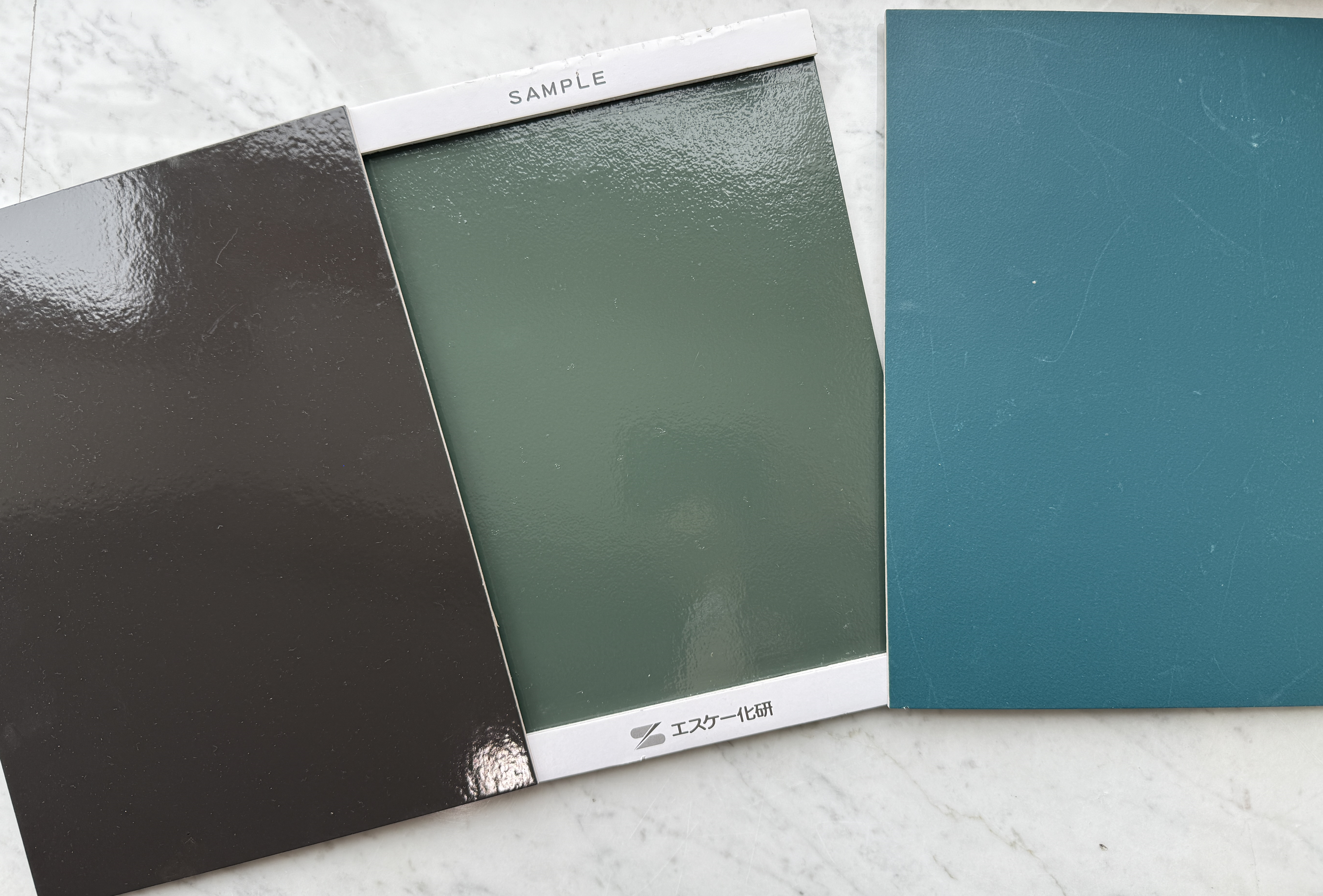 外壁塗装もお好みの色へ塗り替えのため、職人さんに塗装サンプル作成していただきました。