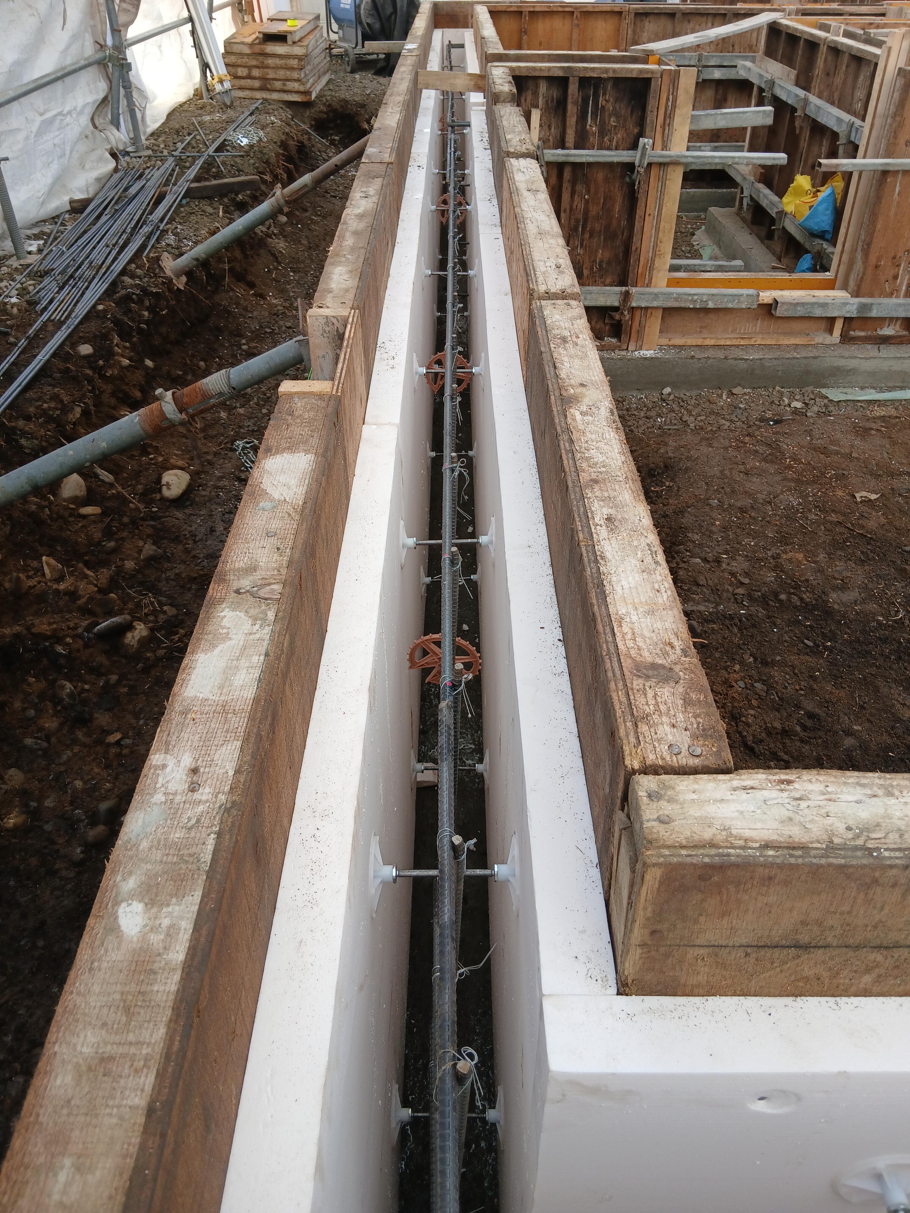 型枠(木材)の内側に断熱材。